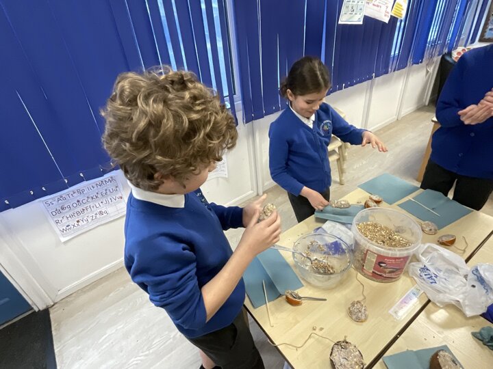 Every half term, the team meets to discuss next steps and ideas for raising awareness for many environmental issues. These have included such things as waste, recycling, protecting the poles/ woodland/ oceans and raising money to help disaster areas eg animals caught up in wildfires. We also make bird feeders for our feathered friends. This year, we hope to improve the bug hotel too!